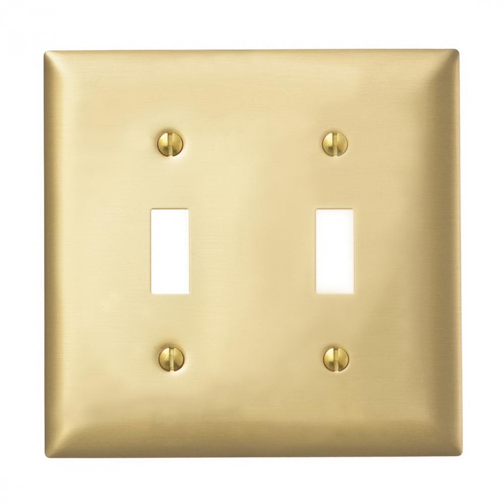 Wiring Device-Kellems SB2 Standard Wallplate, 2 Gangs, 4-1/2 in H x 4-1/2 in W, Brass