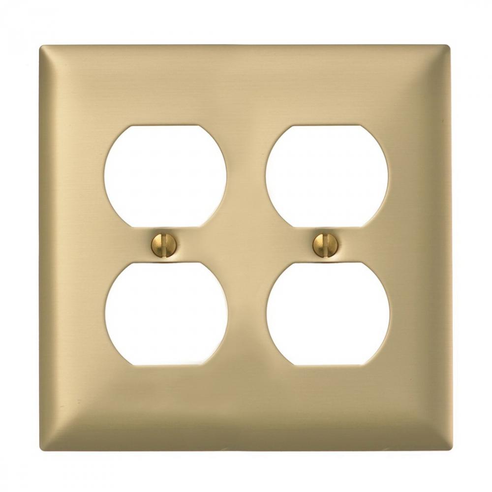 Wiring Device-Kellems SBP82 Standard Receptacle Wallplate, 2 Gangs, 4-1/2 in H x 4-1/2 in W, Brass