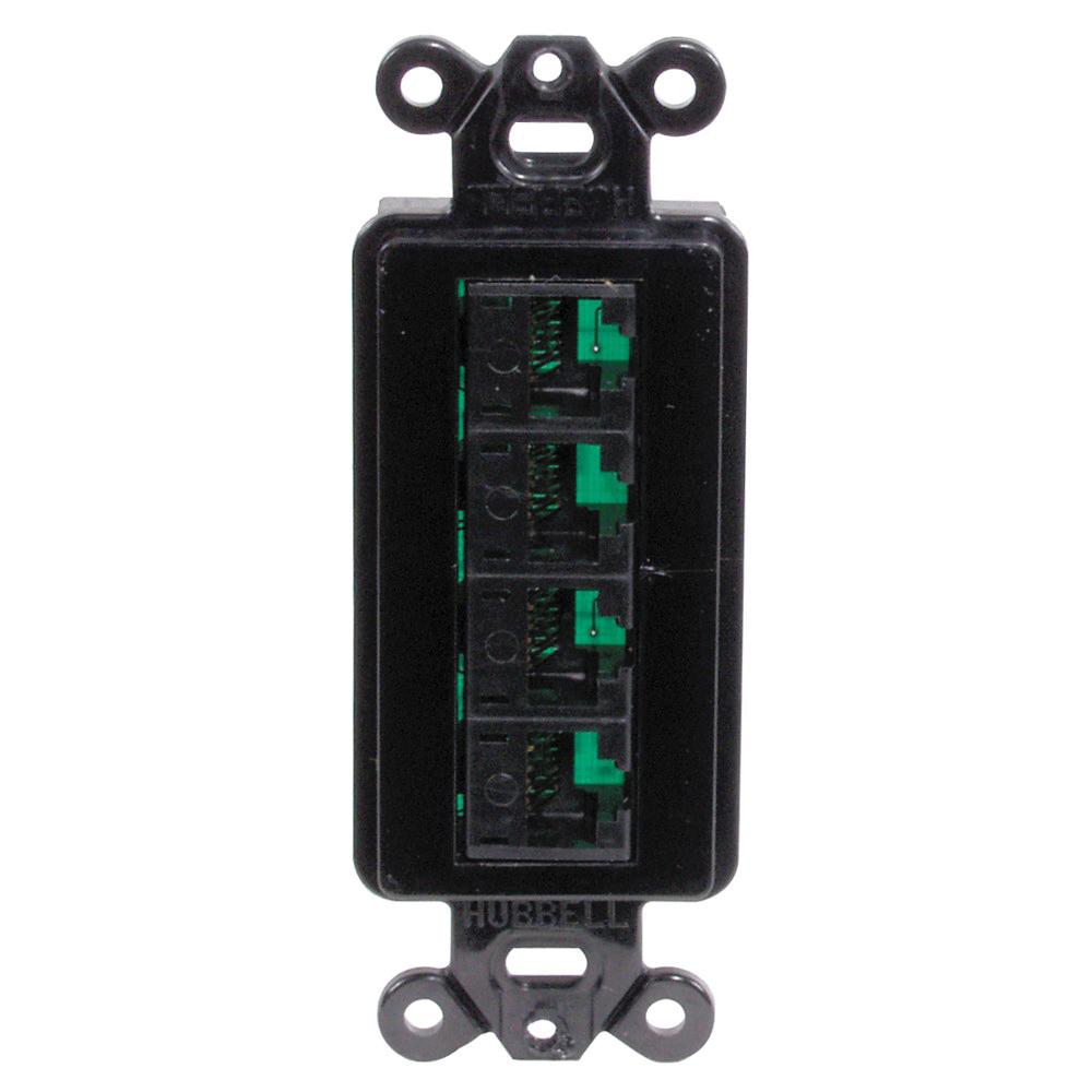 Wiring Device-Kellems Style Line® SL5E4B Cat 5e Outlet Frame, 1 Gang, 4 Ports, Polymer