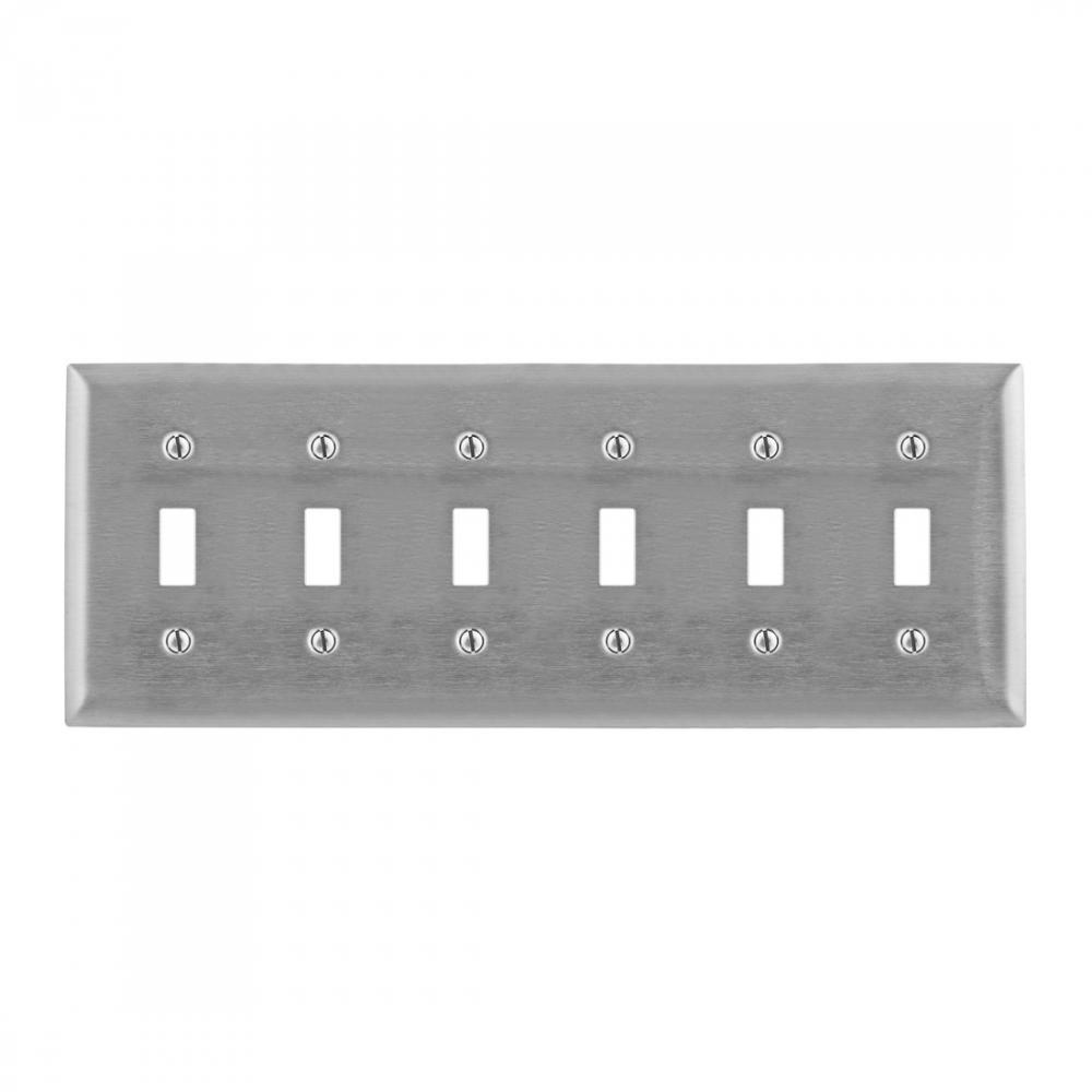 Wiring Device-Kellems SS6C Standard Wallplate, 6 Gangs, 4 in H x 13.2 in W, Stainless Steel