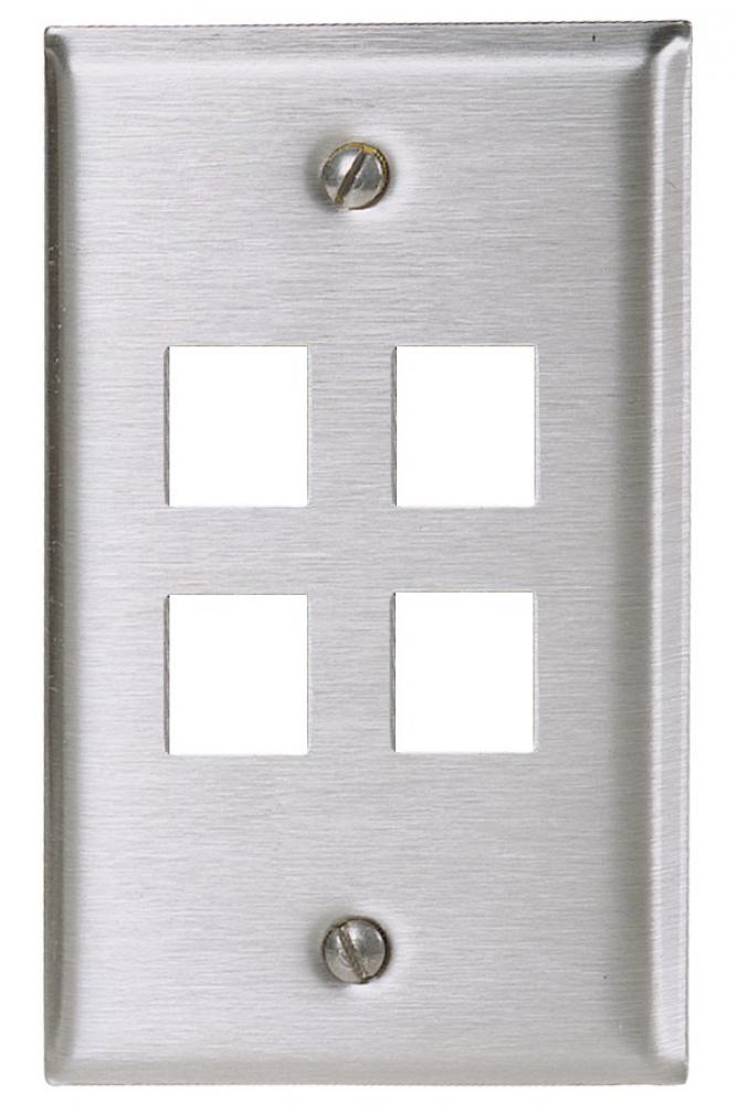 Wiring Device-Kellems iSTATION™ SSF14 Rear Load Standard Stamped Keystone Faceplate, 1 Gang, 4 Ports, Audio/Video/Data/Fiber Module, Threaded Mount, 430 Stainless Steel