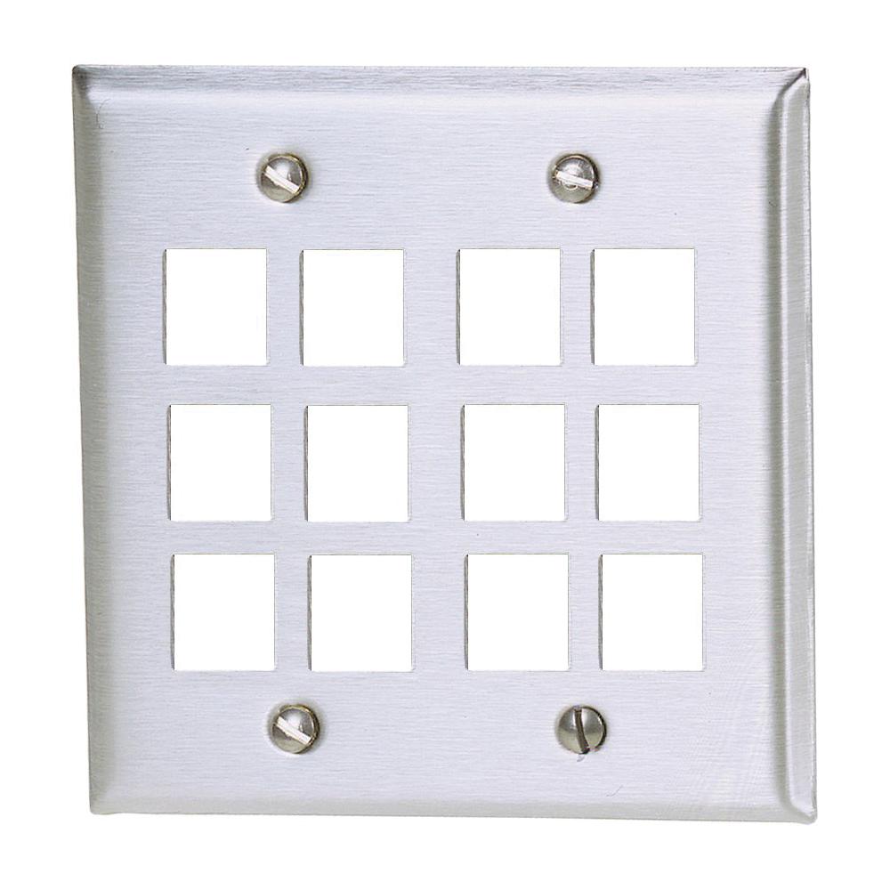 Wiring Device-Kellems iSTATION™ SSF212 Keystone Standard Vertical Faceplate, 2 Gangs, 12 Ports, Threaded Mount, Stainless Steel