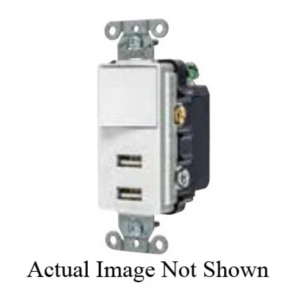 Wiring Device-Kellems Style Line® USB102 2-Port Decorator Duplex Standard Sized Switch Combo Outlet, 1 Phase, 2 Poles