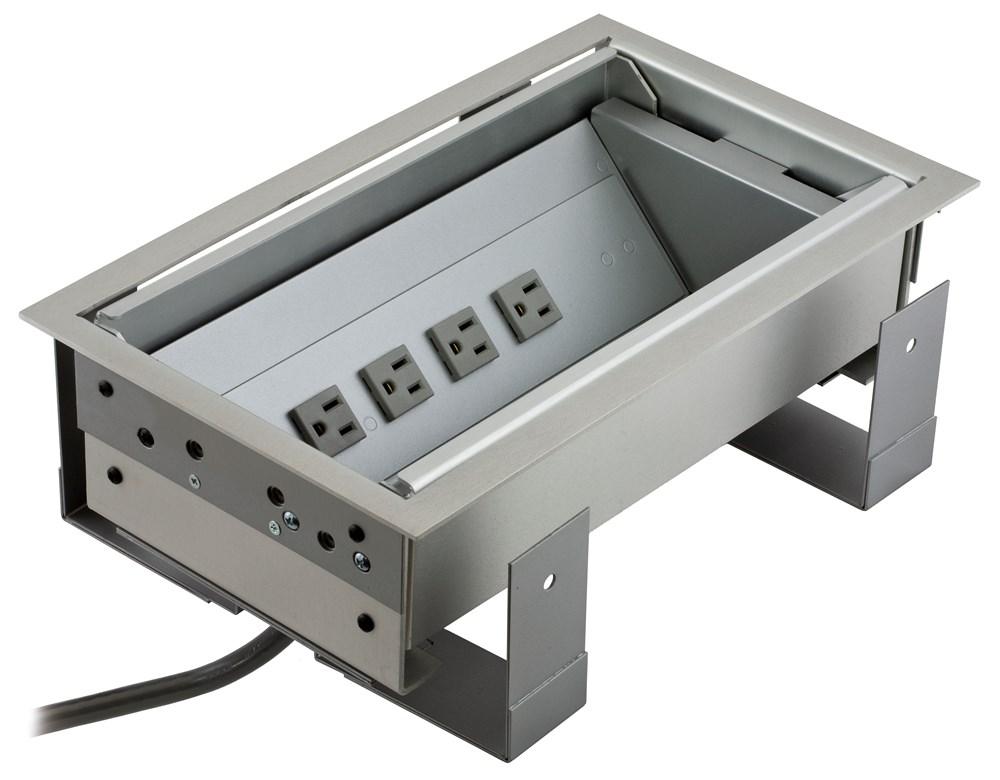 Wiring Device-Kellems WSBG43UBK Elite Fabricated Concealed Recessed Standard Work Surface Box With 6 ft Power Cord, Composite, 4 Outlets
