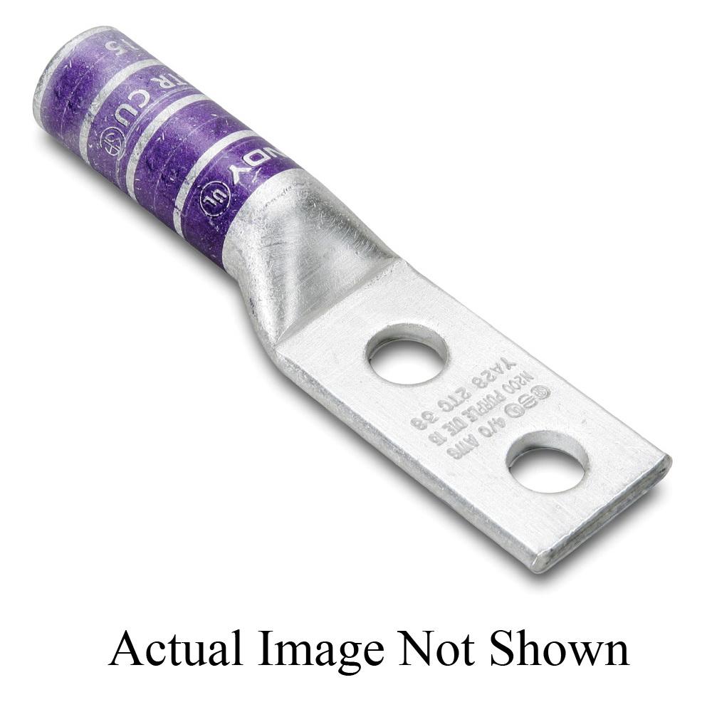 BURNDY® HYLUG™ YA282N 2-Hole Compression Lug Connector, 4/0 AWG Stranded Copper Conductor, Die Code: 15, 1/2 in Stud, Copper