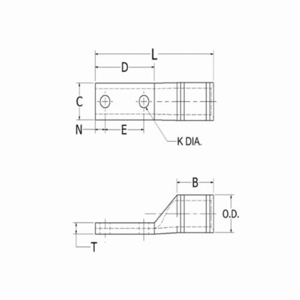 BURNDY® HYLUG YA39A5N131TD12E YA-E 1-Hole Compression Lug With Inspection Window, 500 kcmil Stranded Copper Conductor, Die Code: 300, 1/2 in Stud, Copper