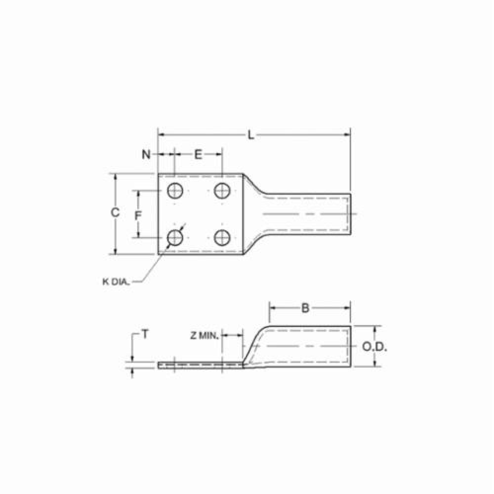 BURNDY® HYLUG YA4CN 1-Hole Non-Insulated Compression Lug, 4 AWG Stranded Copper Conductor, Die Code: 8/346, 1/2 in Stud, Copper