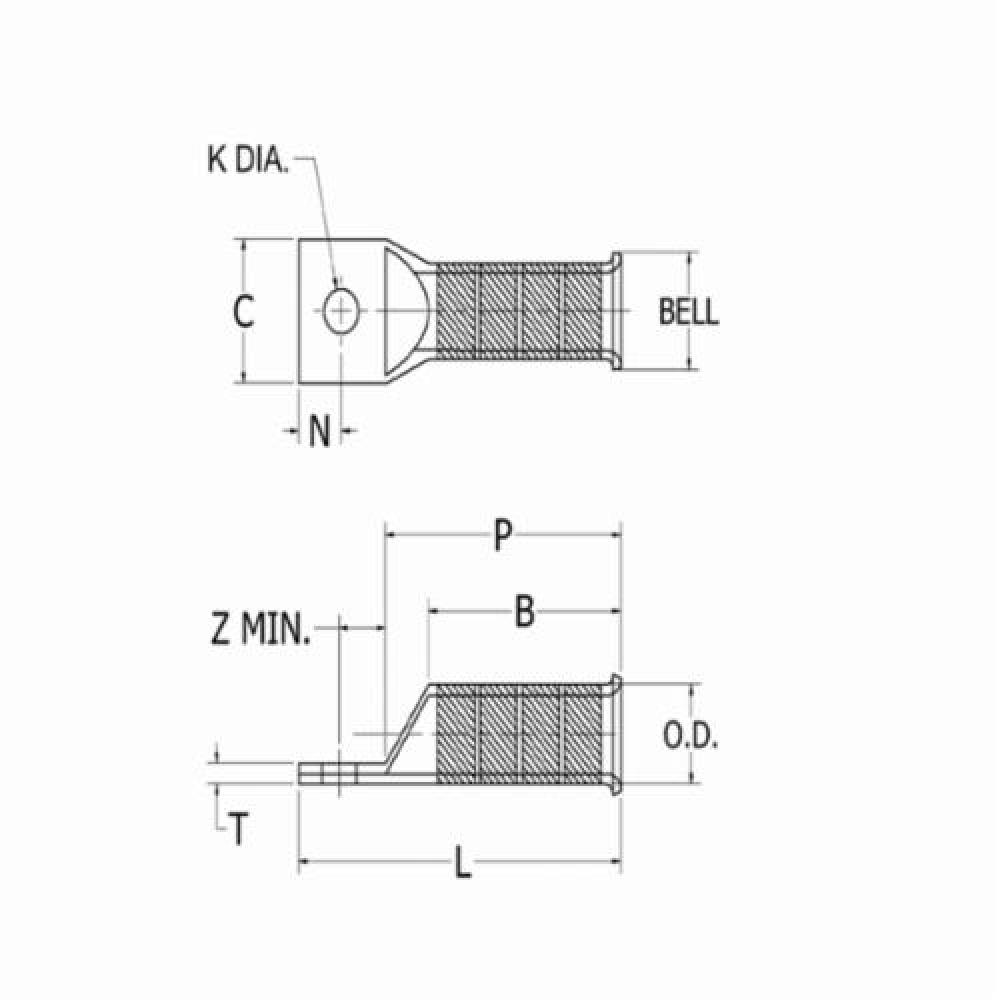 BURNDY® HYLUG YAV28TC12FXB YAV-TC-FXB 1-Hole Compression Lug, 4/0 AWG Stranded Copper Conductor, Die Code: 15, 1/2 in Stud, Copper