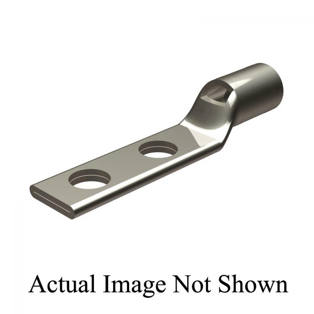 BURNDY® HYLUG™ YAV4CL2NT14FX 2-Hole Standard Barrel Compression Lug With Inspection Window, 4 AWG Copper Flexible/Solid/Stranded Conductor, Die Code: 8, 1/4 in Stud, Copper