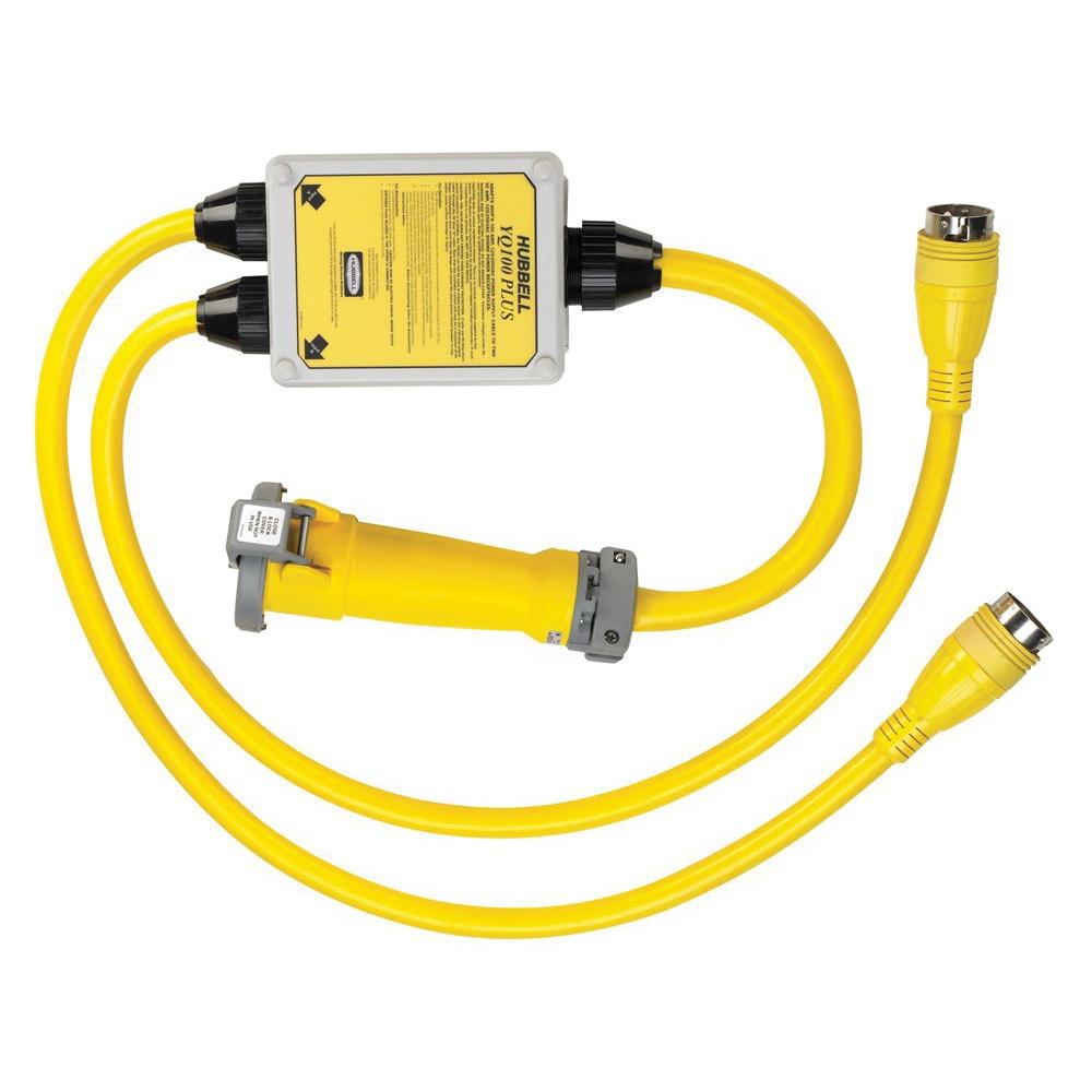 Wiring Device-Kellems YQ100PLUS Insulated Y Reversed Splitter/Adapter, 125/250 VAC, 50 A, 3 Outlets, Twist-Lock® 50 A 125/250 VAC Female Receptacle Connector, 9 ft L Cord