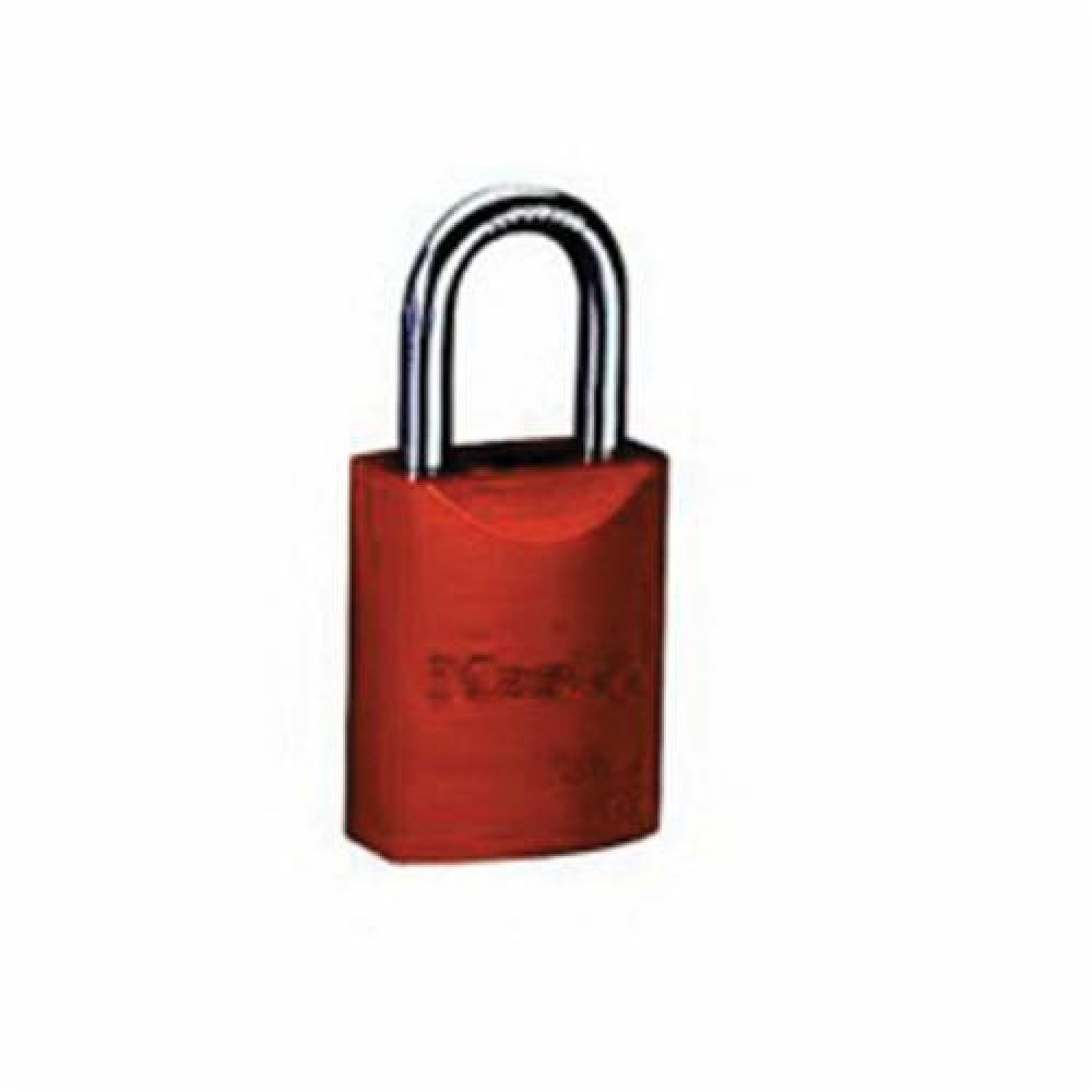 IDEAL® 44-922 Safety Padlock, Keyed Alike/Master Keyed Key, Red, Powder Coated Aluminum Body, 1/4 in Dia x 1-1/16 in H Shackle