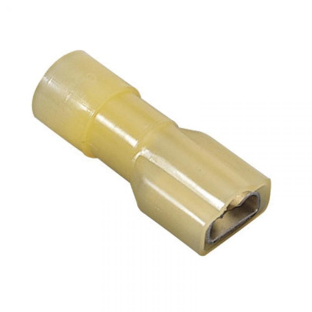 IDEAL® 84-9791 Fully Insulated Female Disconnect Terminal, 12 to 10 AWG Conductor, 0.25 x 0.032 in Tab, Shouldered Barrel, Brass/Nylon