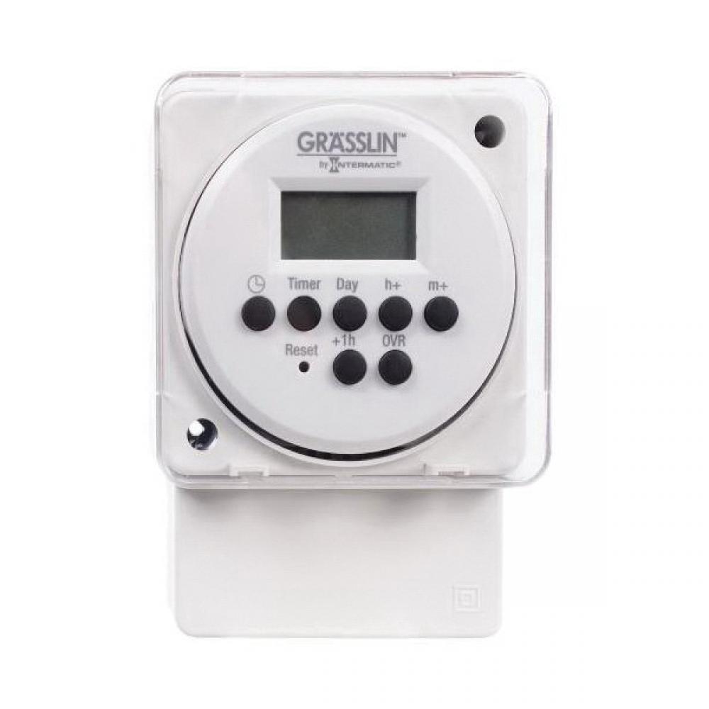 Intermatic® Grasslin FM1D14A-12 Electronic Time Switch With Clear Dust Cover, 24 hr to 7 Days Time Setting, 12 VDC, 0.5 hp, 1 hp, 1SPDT 1NO-1NC Contact Form, 1 Pole