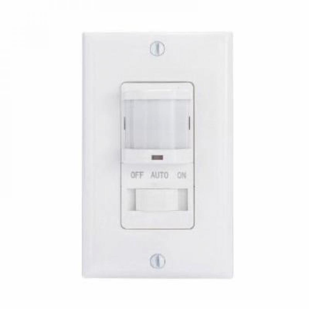 Intermatic® IOS-DSIF-WH Electronic Line Voltage Magnetic Occupancy Sensor Switch With Manual Override, 120 VAC, Passive Infrared Sensor, 980 sq-ft Coverage, 150 deg, Wall Mount