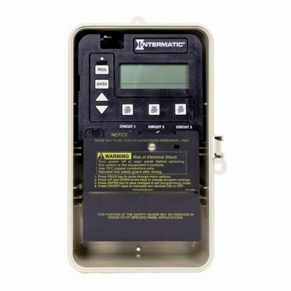 Intermatic® PE100 3-Circuit Digital Timer Switch, 24 hr Time Setting, 120/240 VAC, 1NO-1NC-3 x SPDT Contact Form, 1 Pole