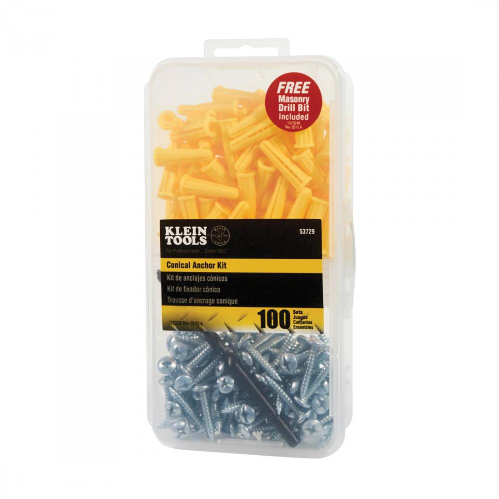 Klein® 53729 Conical Anchor Kit, 1/4 in Drill, 100 Pieces, Steel