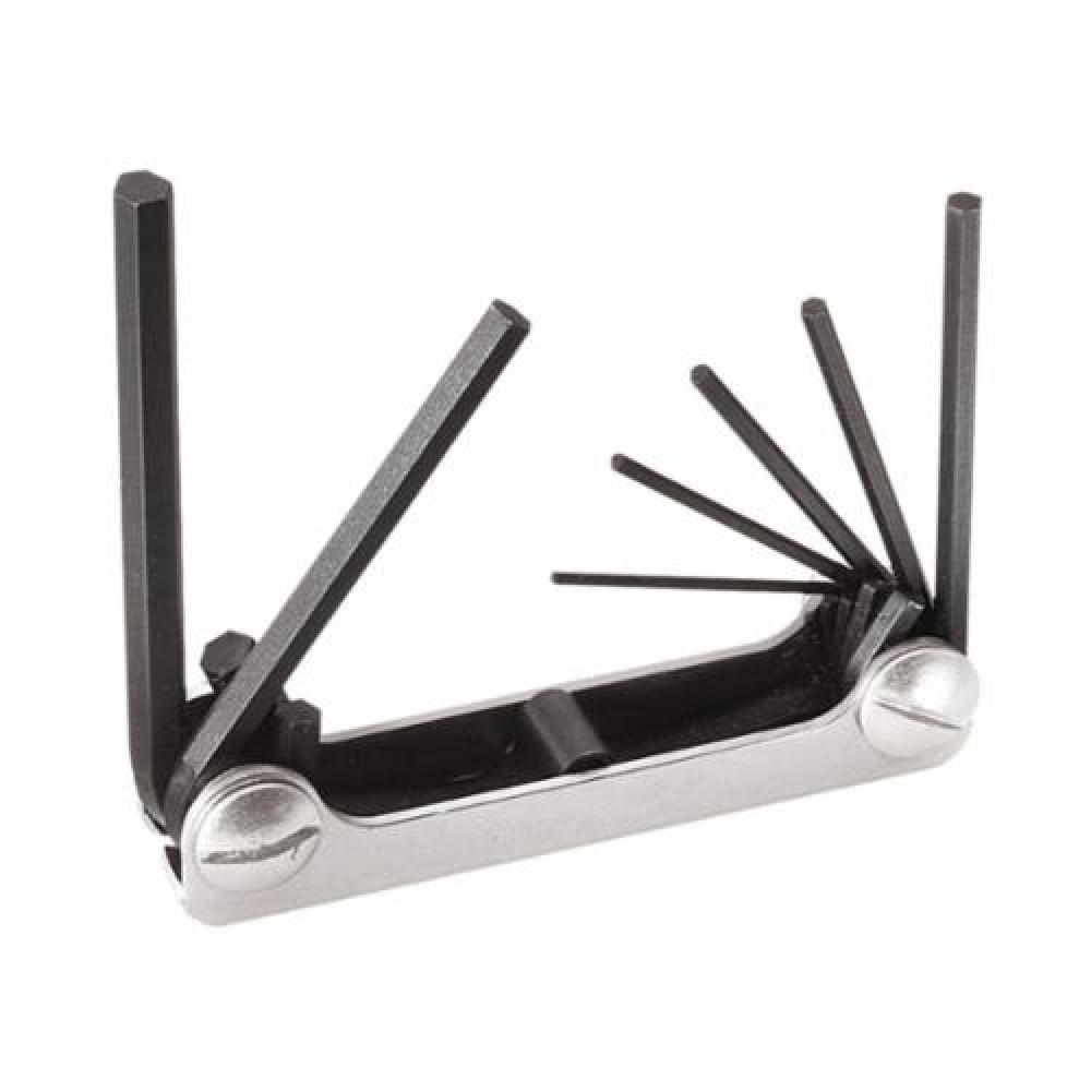 Klein® 70582 Folding Key Set, Metric, 7 Pieces, 1.5 to 6 mm Hex, Alloy Steel, Polished Chrome/Nickel Plated