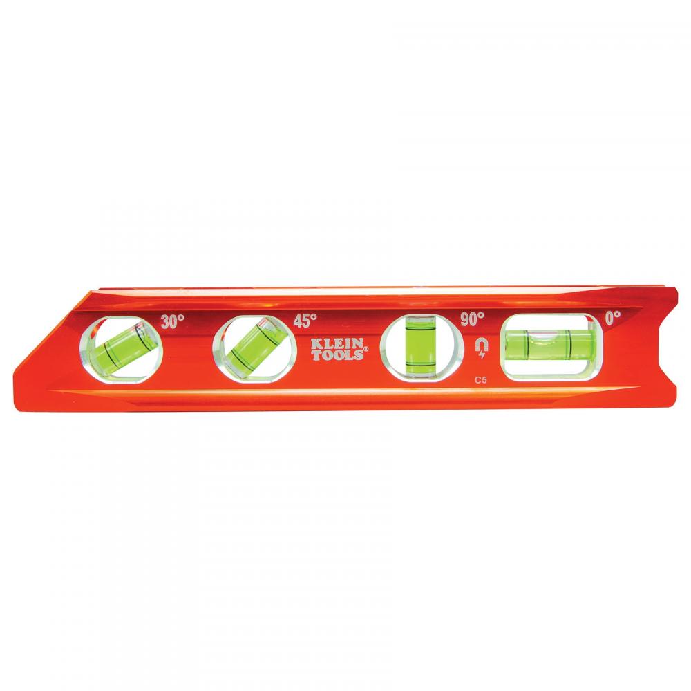 Klein® 935RB Rare Earth Magnet Torpedo Billet Level, 8 in L, 4 Vials, Aluminum, 0/30/45/90 deg Vial Position, 0.1%