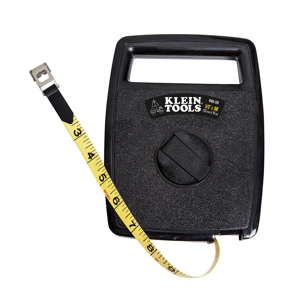 Klein® 946-50 Measuring Tape, 50 ft L x 1/2 in W Blade, Woven Fiberglass, Imperial, 1/8 in