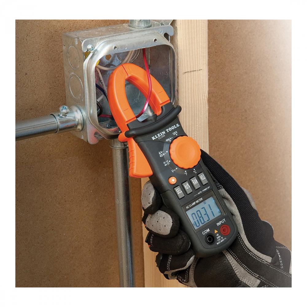 Klein® CL200 AC Clamp Meter, 600 A at 600 VAC/VDC, 40 MOhm, 100 kHz, 1 in Jaw, LCD Display