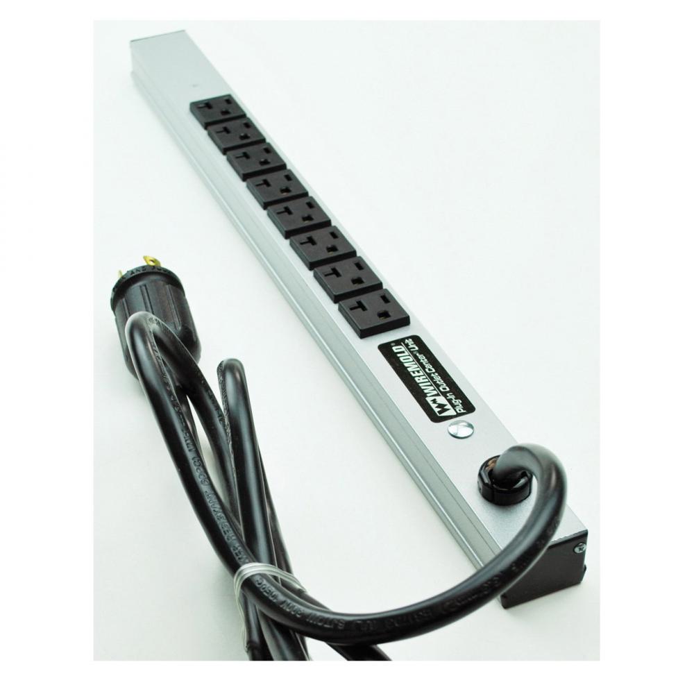 Wiremold® 2008ULBC20R-TL CabinetMATE 1-Phase Plug-In Power Outlet Center Unit, 125 VAC, 20 A, 8 Outlets, 6 ft L Cord, Spring Clip Mount