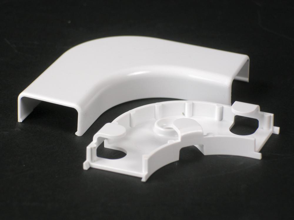 Wiremold® 2811FO Flat Non-Metallic Raceway Elbow, 90 deg Bend, 1-1/4 in Bend Radius, 1 x 1/2 in OD, PVC