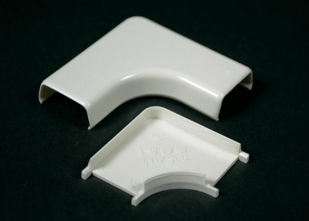Wiremold® 411-WH Flat Non-Metallic Raceway Elbow, 90 deg Bend, 2 in Bend Radius, 7/16 x 7/8 in OD, PVC
