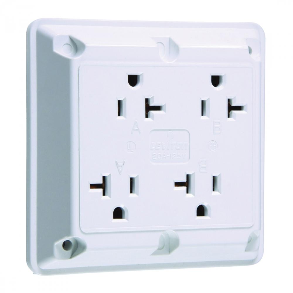 Pass & Seymour® 420-W Heavy Duty Quad Straight Blade Receptacle, 125 VAC, 20 A, 2 Poles, 3 Wires, White