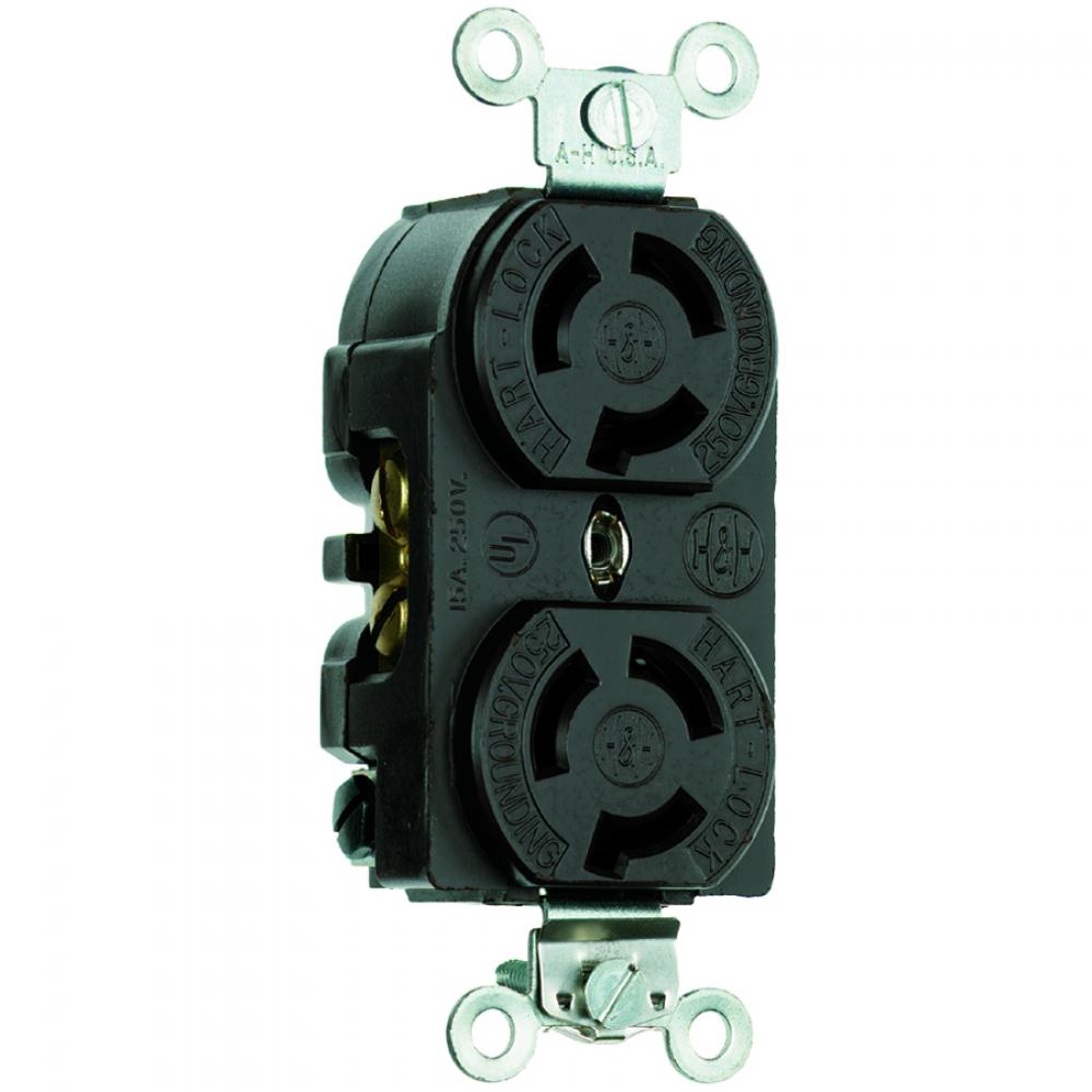 Pass & Seymour® Turnlok® 4550 Duplex Locking Receptacle, 250 VAC, 15 A, 2 Poles, 3 Wires, Black