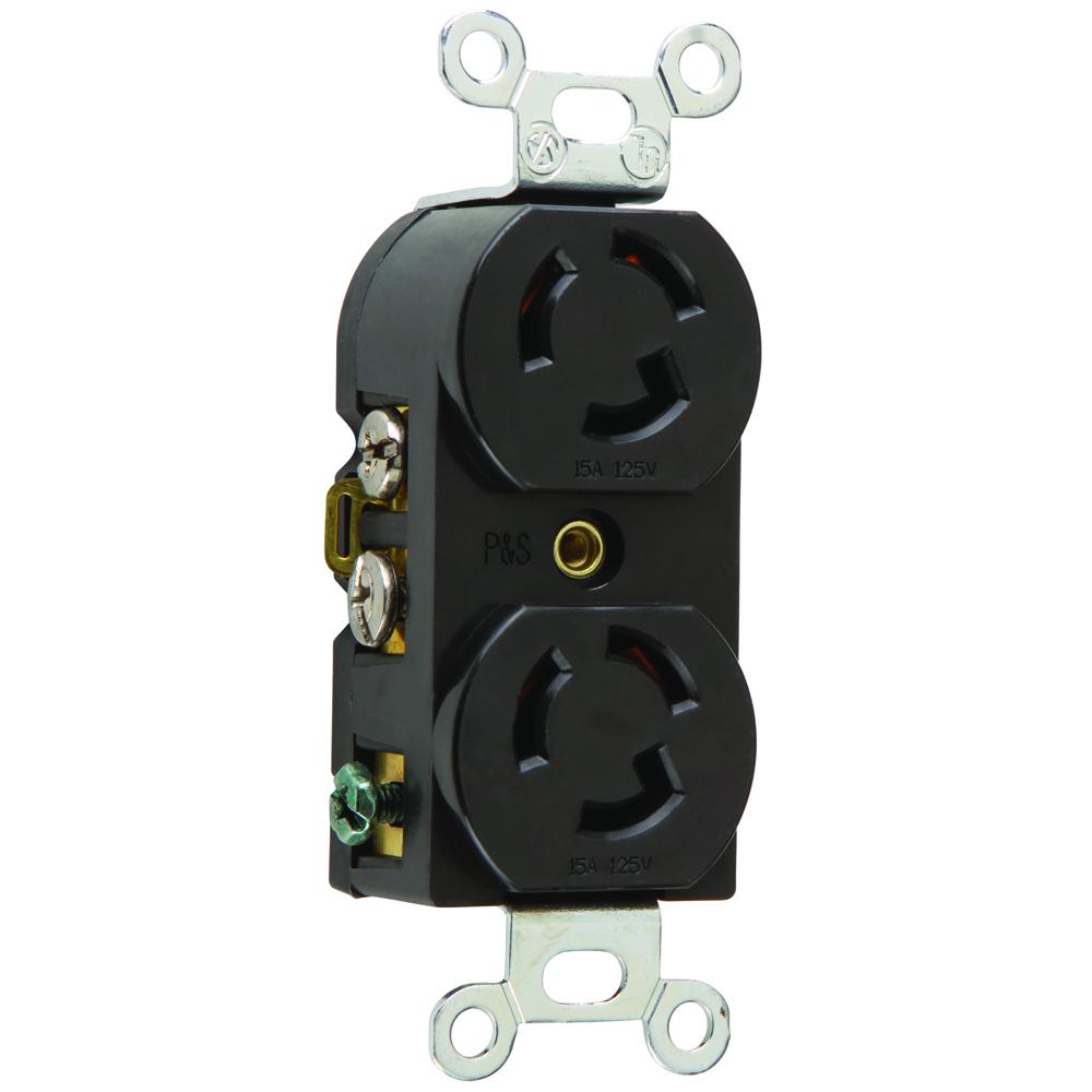 Pass & Seymour® Turnlok® 4700 3-Phase Duplex Locking Receptacle, 125 VAC, 15 A, 2 Poles, 3 Wires, Black