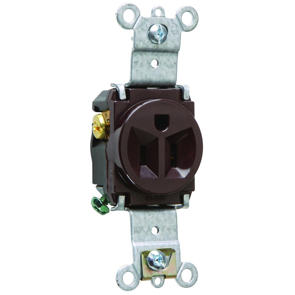 Pass & Seymour® 5261 Heavy Duty Single Straight Blade Receptacle, 125 VAC, 15 A, 2 Poles, 3 Wires, Brown