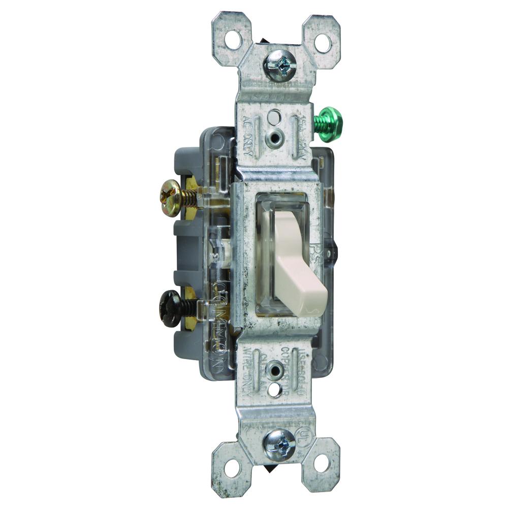 Pass & Seymour® TradeMaster® 663LASLG 3-Way Lighted Self-Grounding Toggle Switch, 120 VAC, 15 A, 1/2 hp Power Rating