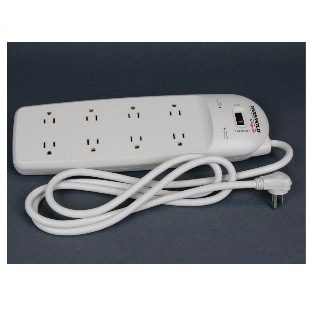 Wiremold® 77000N 1-Stage Plug-In Basic Surge Protector, 120 VAC, 15 A, 8 Outlets, 6 ft L Cord, Keyhole Mount