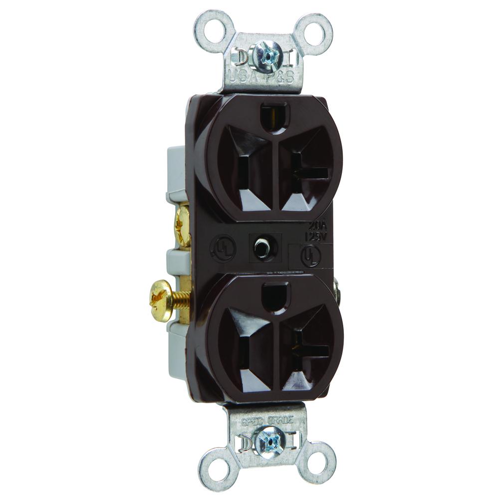 Pass & Seymour® CR20 Duplex Straight Blade Receptacle, 125 VAC, 20 A, 2 Poles, 3 Wires, Brown