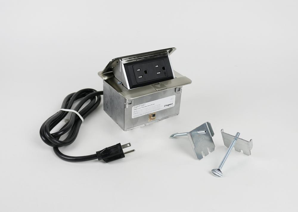 Wiremold® DEQUORUM DQFP15ST DE Quorum Dual Flip-Up Unit With 6 in Cord, Stainless Steel, 2 Outlets