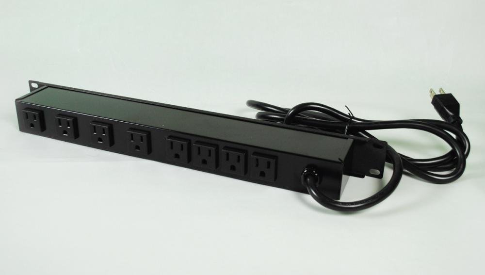 Wiremold® J08B2B Multi-Outlet Power Strip, 125 VAC, 15 A, 8 Outlets, 15 ft L Cord, Rack Mount