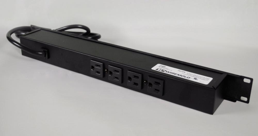 Wiremold® J24B0B Multi-Outlet Power Strip, 120 VAC, 15 A, 6 Outlets, 6 ft L Cord, Rack Mount