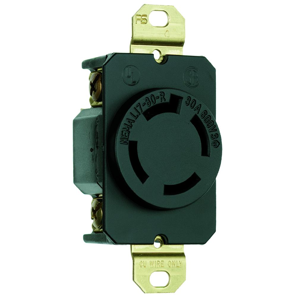 Pass & Seymour® Turnlok® L1730-R 3-Phase Single Locking Receptacle, 600 VAC, 30 A, 3 Poles, 4 Wires, Gray