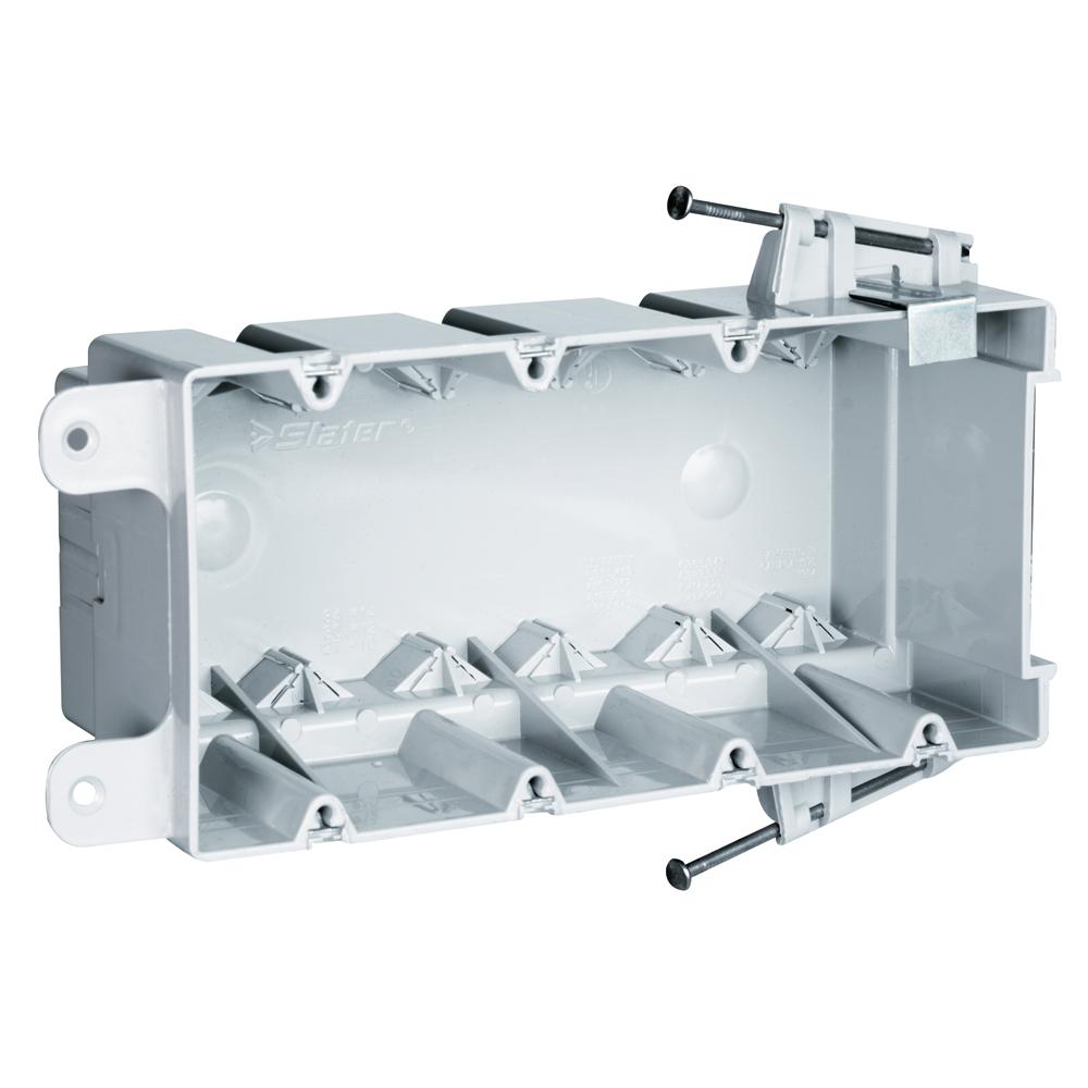 Pass & Seymour® S4-68-RAC Slater Switch Outlet Box With Quick Click, Thermoplastic, 68 cu-in Capacity, 4 Gangs, 4 Outlets, 3.75 in L x 2.25 in W x 2.87 in H
