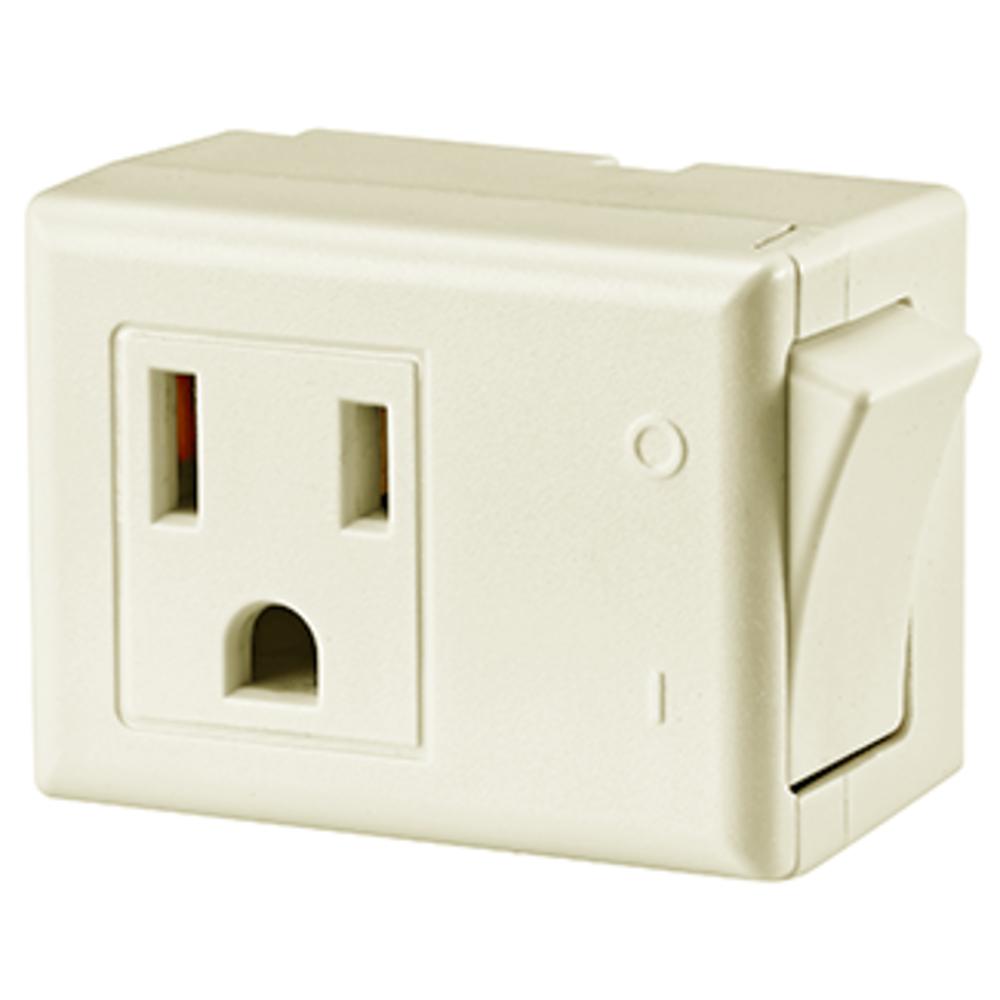 Leviton® 1470-I Grounding Polarized Switch Tap With ON/OFF Rocker Button, 125 VAC, 15 A