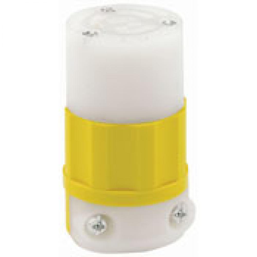 Leviton® Black & White® 2613-CY 1-Phase Grounding Cable Mount Locking Connector, 125 VAC, 30 A, 2 Poles, 3 Wires, White/Yellow