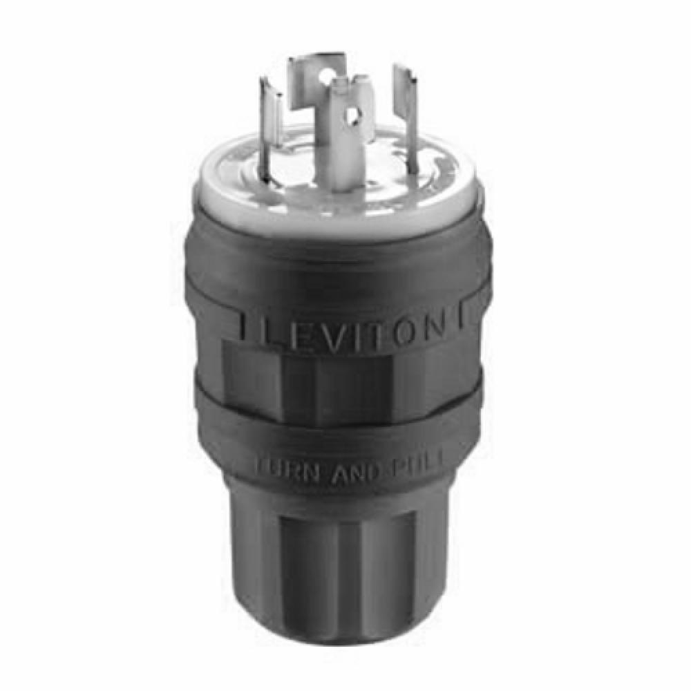 Leviton® Wetguard® 26W09-B 3-Phase Non-Grounding Locking Plug, 120/208 VAC, 20 A, 4 Poles, 4 Wires, Black