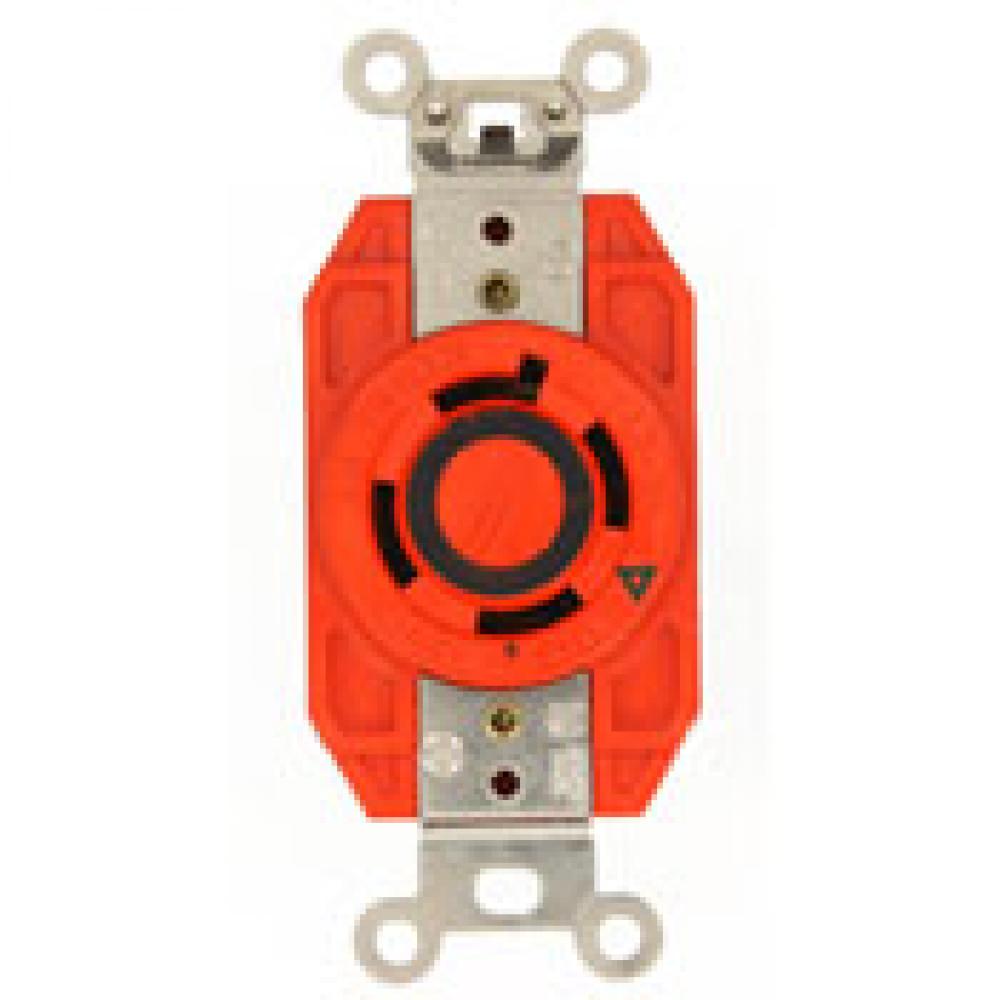 Leviton® V-0-Max™ 2740-IG 3-Phase Y Isolated Grounding Locking Receptacle, 600 VAC, 30 A, 3 Poles, 4 Wires, Orange