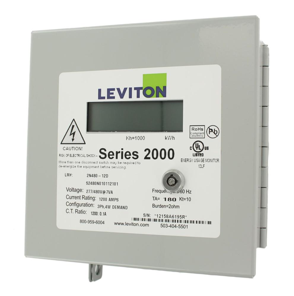 Leviton® VerifEye™ 2N480-12D 2000 3-Phase 4-Wire 3-Element Surface Mount Demand Meter, 277/480 VAC, 1200 A, LCD Display, Isolated Pulse Output Communication