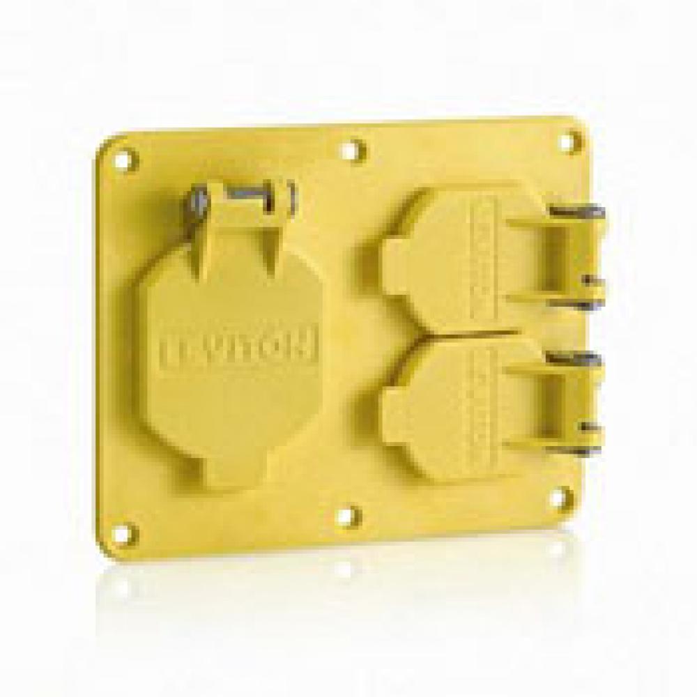 Leviton® 3262W-Y Single Receptacle Cover Plate With Weather Resistant Flip Lid, 1.56 in Dia, 5.3 in L x 4.3 in W, Polycarbonate