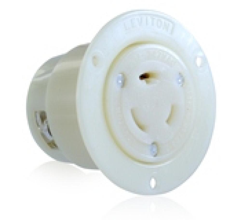 Leviton® 3756 Grounding Receptacle Locking Flanged Outlet, 347 VAC, 20 A, 2 Poles, 3 Wires, White