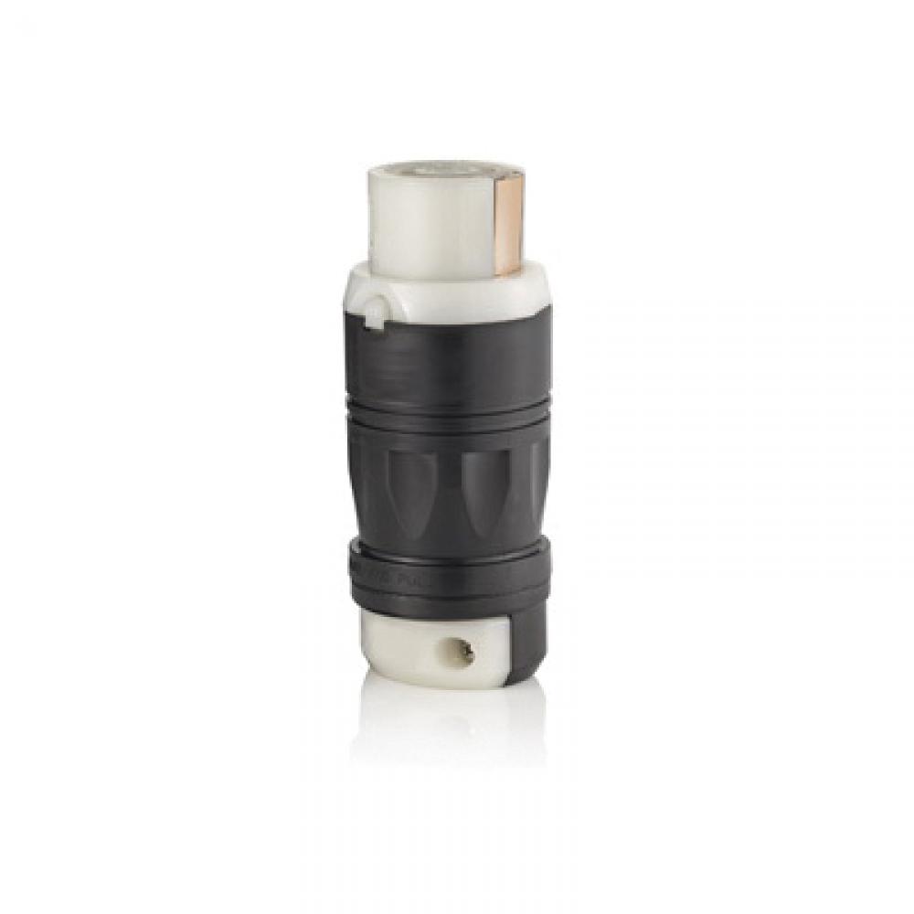 Leviton® 3762C Grounding Locking Connector, 600 VAC, 250 VDC, 50 A, 2 Poles, 3 Wires, Black/White