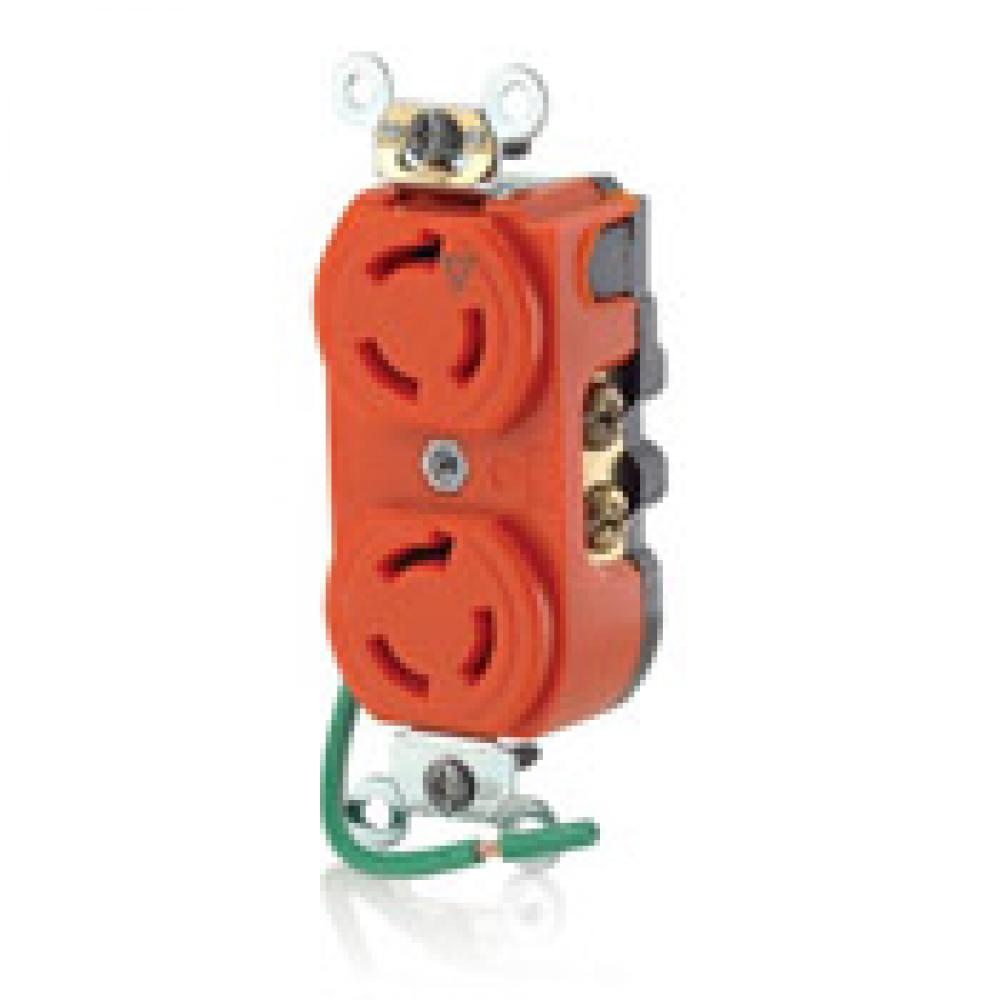 Leviton® V-0-Max™ 4550-IG Duplex Extra Heavy Duty Isolated Grounding Locking Receptacle, 250 VAC, 15 A, 2 Poles, 3 Wires, Orange