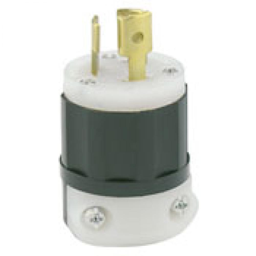 Leviton® Black & White® 4570-PLC 1-Phase Grounding Cable Mount Locking Plug, 250 VAC, 15 A, 2 Poles, 3 Wires, Black/White