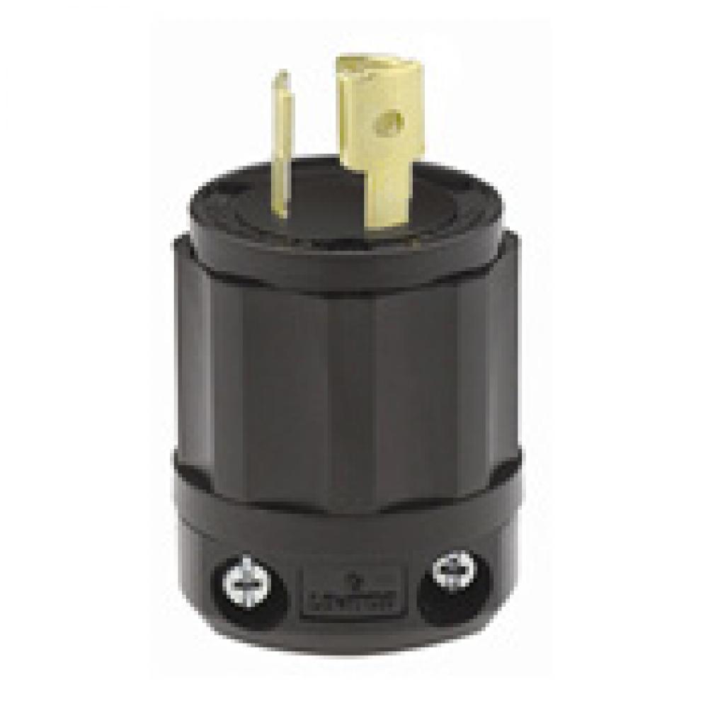 Leviton® Black & White® 4720-B Cable Mount Grounding Locking Plug, 125 VAC, 15 A, 2 Poles, 3 Wires, Black